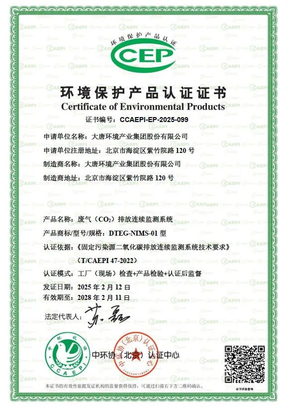 2月12日,大唐環(huán)境自主研發(fā)的二氧化碳排放連續(xù)監(jiān)測系統(tǒng)成功獲得中國環(huán)境保護(hù)產(chǎn)品認(rèn)證(CCEP)證書,成為集團(tuán)公司內(nèi)首家通過該認(rèn)證的企業(yè)。這一里程碑式的成就不僅彰顯了大唐環(huán)境在環(huán)保技術(shù)領(lǐng)域的領(lǐng)先地位,更為國家“雙碳”戰(zhàn)略的實(shí)施注入了強(qiáng)勁動力。