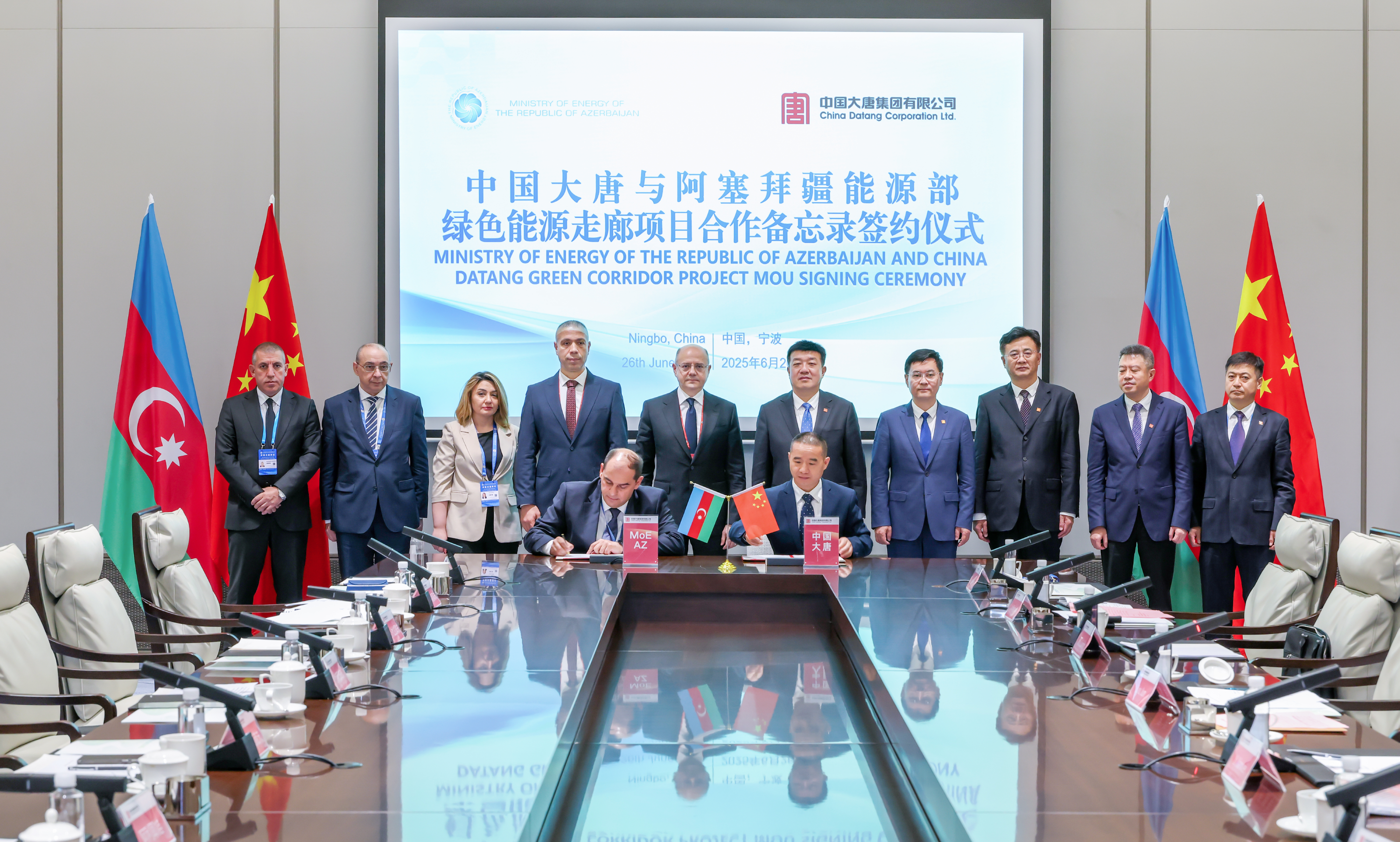 會(huì)談后,阿塞拜疆能源部與中國大唐海外投資有限公司簽署了有關(guān)綠色能源項(xiàng)目諒解合作備忘錄,并舉行了阿塞拜疆能源電力骨干培訓(xùn)開班式。