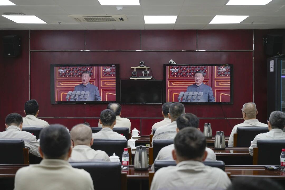 黑龍江發(fā)電公司系統(tǒng)1400余名黨員干部職工在37個(gè)會(huì)場(chǎng)通過電視觀看九三閱兵直播。