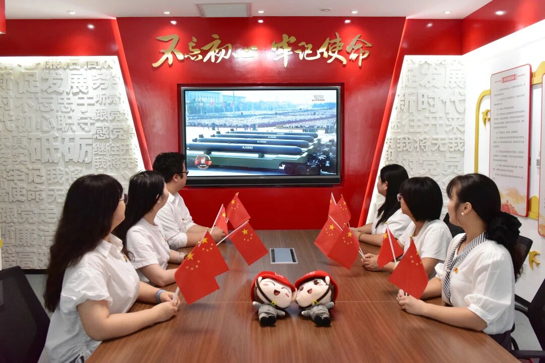 數(shù)科公司在雄安新區(qū)、北京、長沙、重慶等全國各地的干部職工,同一時(shí)間在線收看九三閱兵直播。
