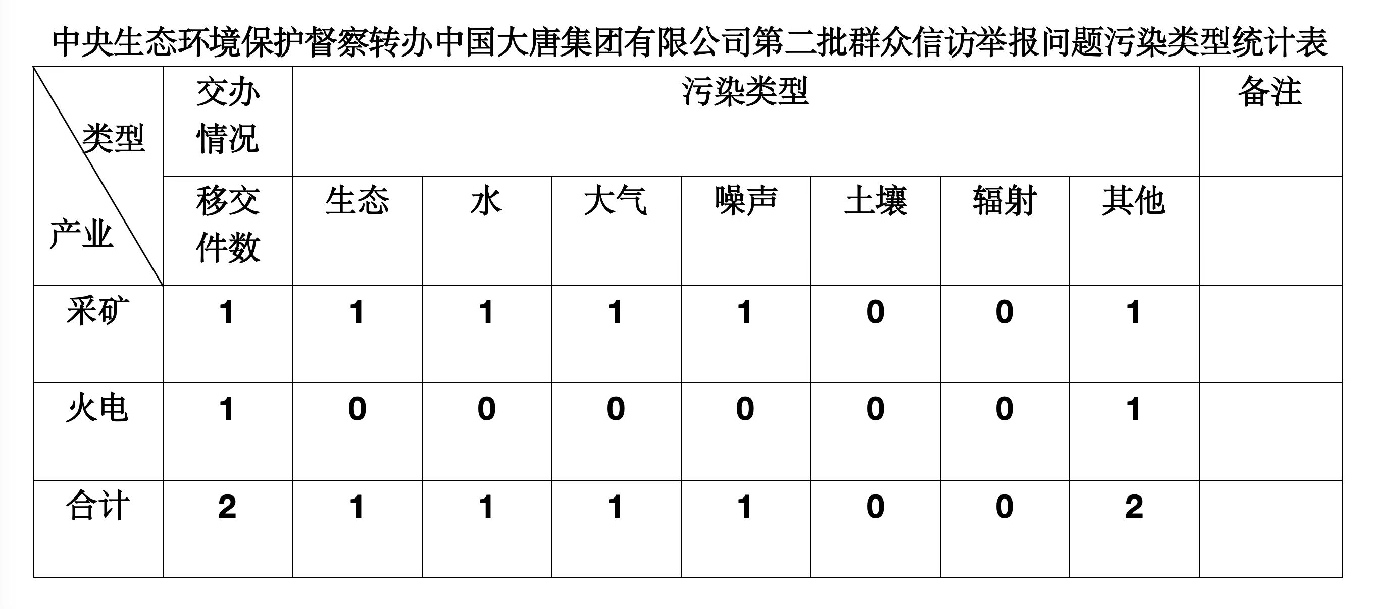 2025年6月4日,中央第七生態(tài)環(huán)境保護(hù)督察組向中國(guó)大唐集團(tuán)有限公司移交第二批群眾信訪(fǎng)舉報(bào)件,共計(jì)2件,來(lái)電舉報(bào)和來(lái)信舉報(bào)各1件,涉及生態(tài)問(wèn)題1個(gè)、水問(wèn)題1個(gè)、大氣問(wèn)題1個(gè)、噪聲問(wèn)題1個(gè)、其他問(wèn)題2個(gè)。所有舉報(bào)件辦理工作已第一時(shí)間進(jìn)入調(diào)查核實(shí)辦理程序,辦理情況將按照相關(guān)要求反饋督察組,并及時(shí)向社會(huì)公開(kāi)。
