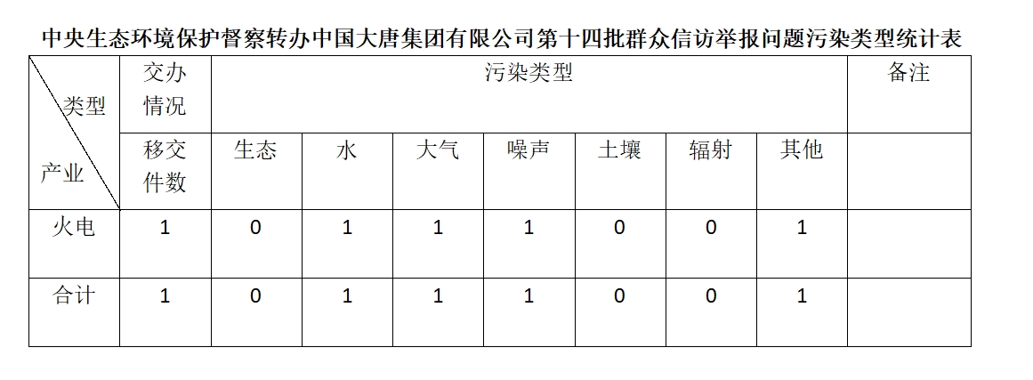 2025年6月20日,中央第七生態(tài)環(huán)境保護督察組向中國大唐集團有限公司移交第十四批群眾信訪舉報件,共計1件,為來電舉報,涉及水問題1個、大氣問題1個、噪聲問題1個、其他問題1個。所有舉報件辦理工作已第一時間進入調(diào)查核實辦理程序,辦理情況將按照相關要求反饋督察組,并及時向社會公開。