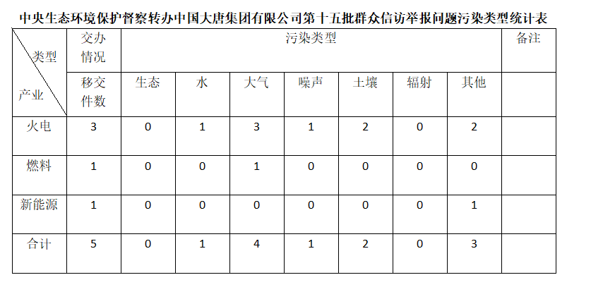 中央第七生態(tài)環(huán)境保護(hù)督察組向中國(guó)大唐集團(tuán)有限公司轉(zhuǎn)辦第十五批群眾信訪舉報(bào)件