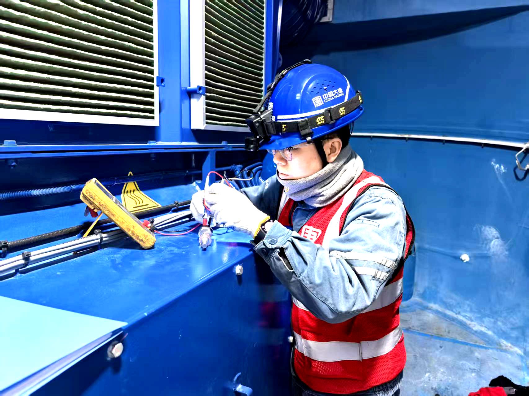 機(jī)艙蓋板剛掀開一道縫,凜冽的寒風(fēng)就像無數(shù)冰粒砸在臉上。他下意識(shí)側(cè)過身用胳膊護(hù)住口鼻,借著風(fēng)勢(shì)稍緩的瞬間猛地推開蓋板。頂著呼嘯的狂風(fēng),他順著機(jī)艙內(nèi)部爬梯穩(wěn)步挪到控制柜旁,迅速從工具包中掏出萬用表,“停電—驗(yàn)電—掛牌”整套安全流程一氣呵成,動(dòng)作干脆利落,沒有絲毫拖泥帶水。