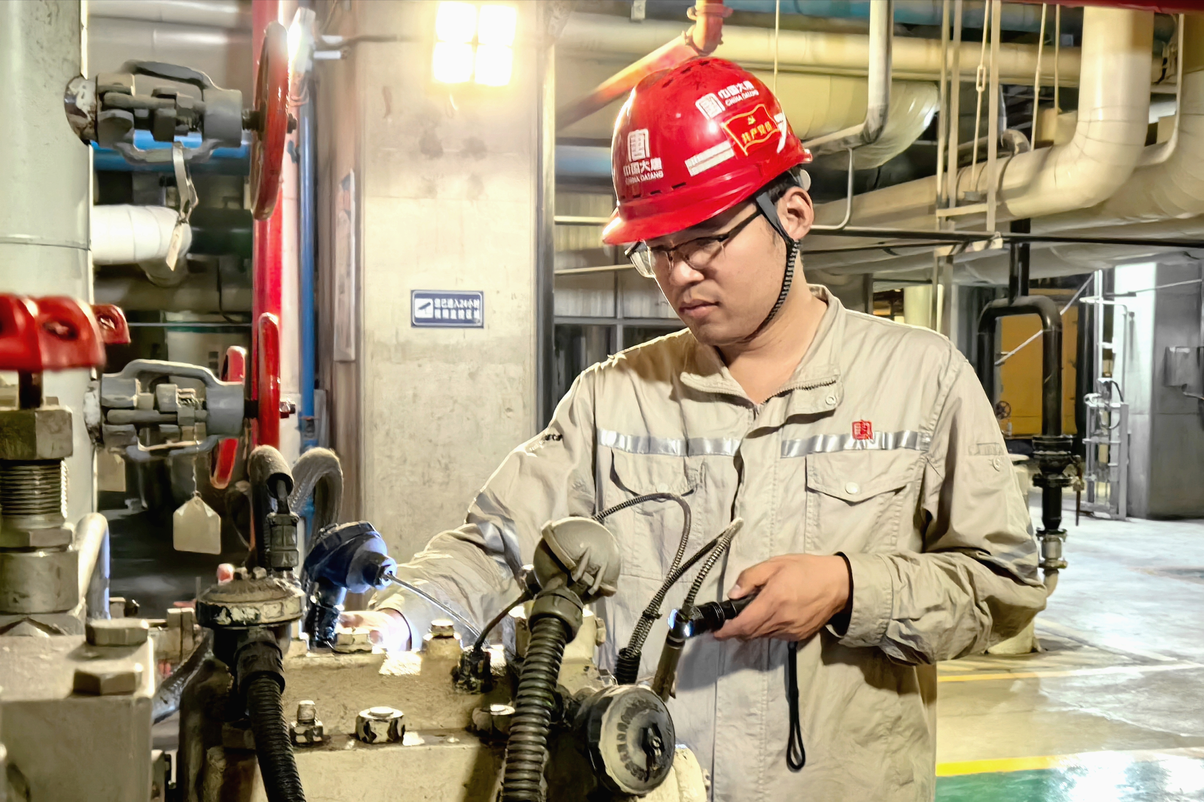 凌晨3點(diǎn),廠區(qū)上空繁星點(diǎn)點(diǎn),生活水供水壓力出現(xiàn)波動。經(jīng)驗(yàn)豐富的汽機(jī)點(diǎn)檢員王洪軍憑借敏銳的參數(shù)警覺,抓起手電筒沖向現(xiàn)場。憑借對設(shè)備的熟悉,他迅速鎖定異常區(qū)域,結(jié)合泵電流的波動,精準(zhǔn)判斷:“是管道泄漏。必須立即處置。”他抓起對講機(jī),聲音斬釘截鐵:“秦工,馬上組織現(xiàn)場作業(yè),吊車、焊工、維修組即刻到位,備齊管道、螺栓、墊片?!蹦贻p的汽機(jī)點(diǎn)檢長秦建亮聞訊疾馳而來,一邊奔赴現(xiàn)場,一邊調(diào)閱電子檔案?!巴鯉煾担?guī)格無誤,備件已齊備?!碑?dāng)維護(hù)人員火速集結(jié)時,所需備件也已同步送達(dá)現(xiàn)場。