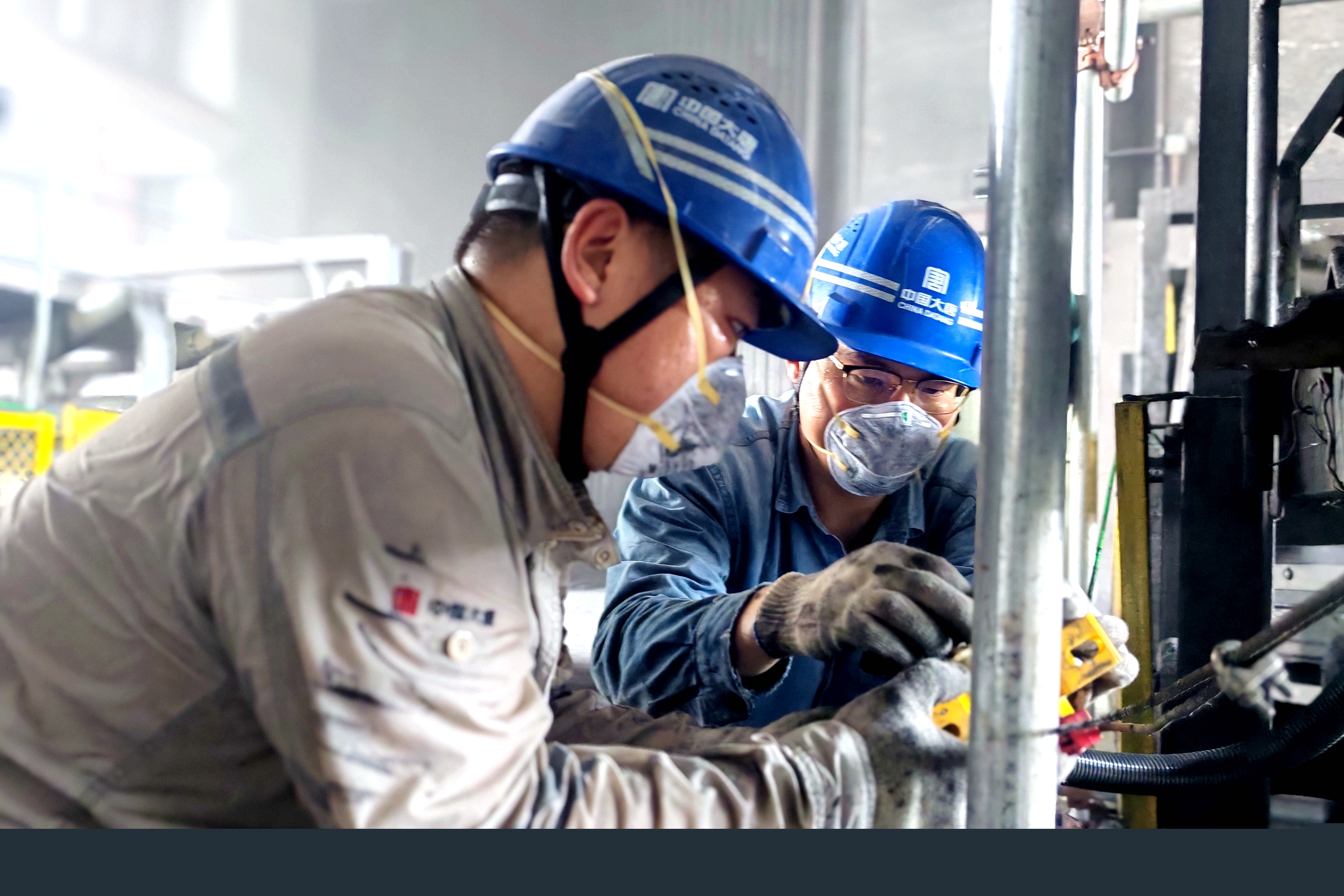 筒倉(cāng)底部悶熱異常,輔控班全員早已汗流浹背。張海峰熟練地操作角磨機(jī),拆除舊電纜,防護(hù)服上沾滿了粉塵;未紀(jì)牢一趟趟扛著沉重的鍍鋅管在狹窄空間里穿梭,工裝后背凝結(jié)出鹽霜;關(guān)興昆鉆入低矮的皮帶架下,用沖擊鉆打孔、固定管卡,任憑汗水從臉頰滑落。