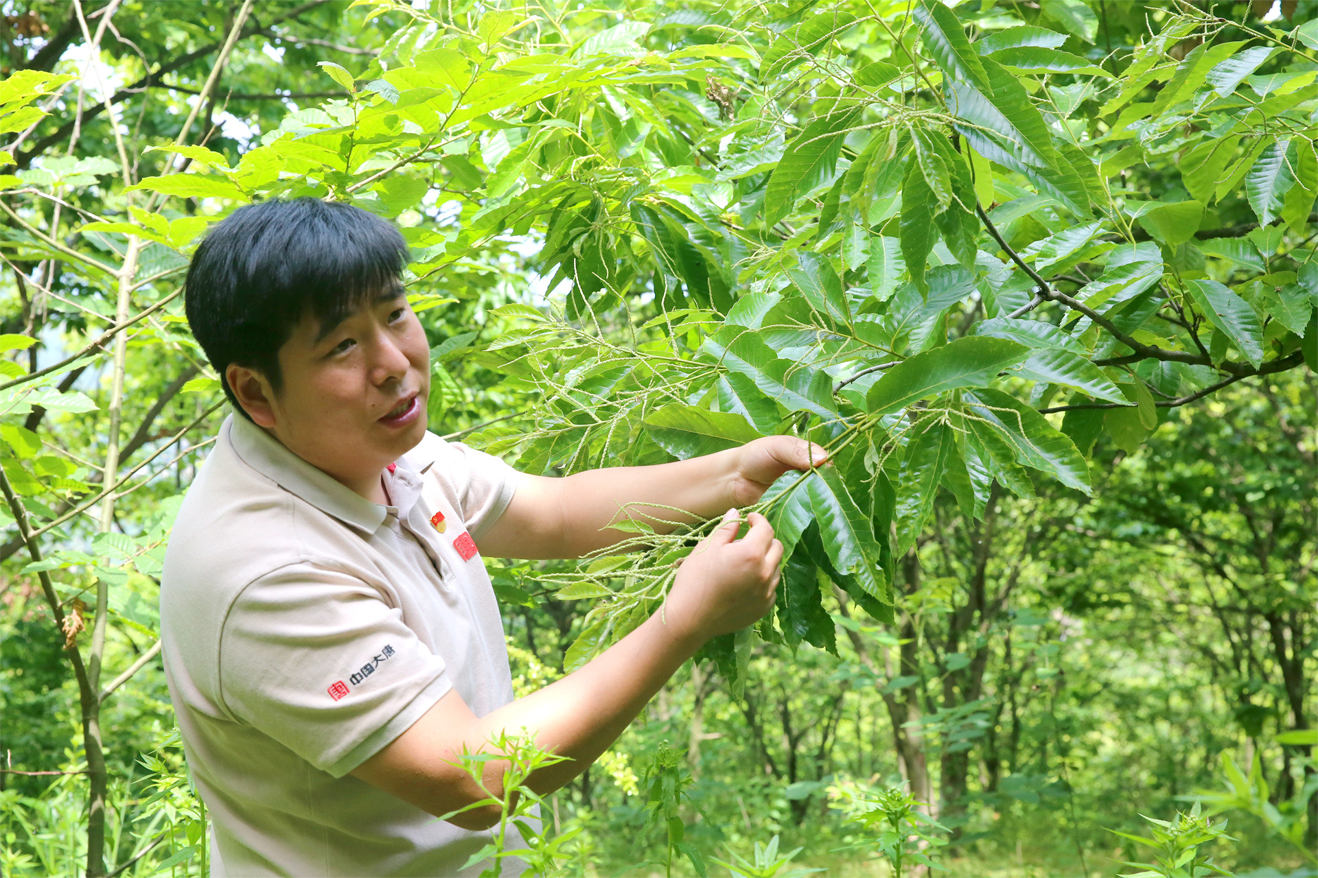 方名興時(shí)常前往板栗、脆李種植地查看長(zhǎng)勢(shì)、有無(wú)病蟲(chóng)害。在他看來(lái),這些就是新安群眾的“致富樹(shù)、小康樹(shù)”。和群眾一起查看了一片板栗林后,他指著一枝樹(shù)葉泛黃的板栗樹(shù)說(shuō):“看,這棵已經(jīng)感染板栗葉黃斑病了!這是霉菌侵害到葉子出現(xiàn)黃斑,然后逐步擴(kuò)散到整個(gè)葉片、枝條,后期病斑中部壞死變黃褐色, 嚴(yán)重影響板栗產(chǎn)量,我們要盡快治理。”