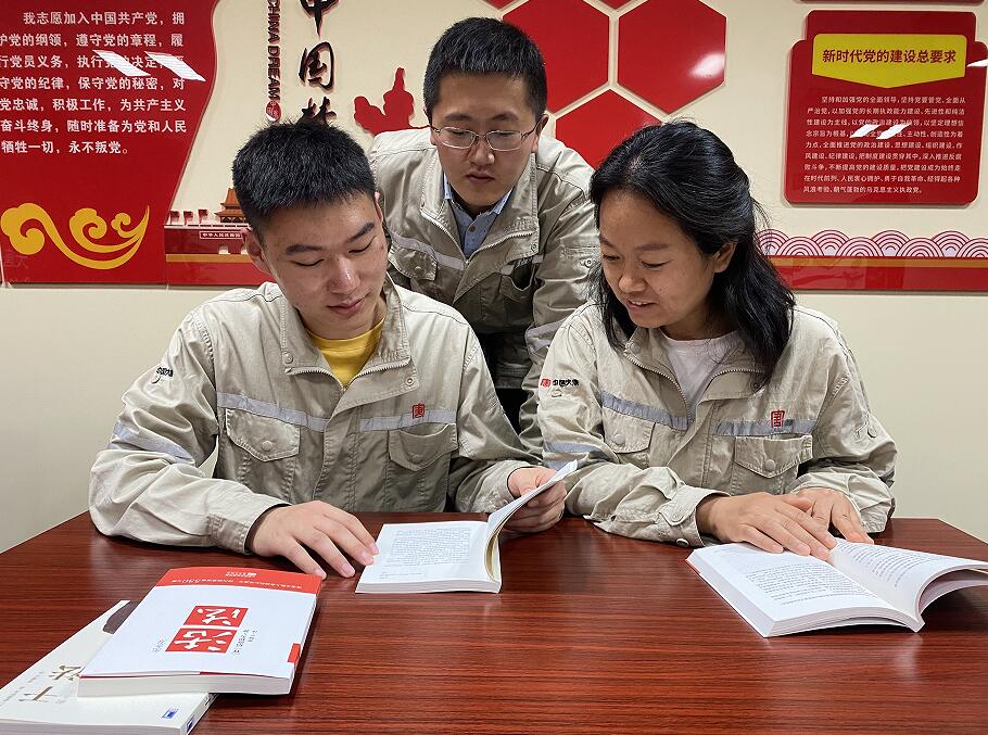 職工在閱覽室閱讀《干法》《活法》(許明/攝)