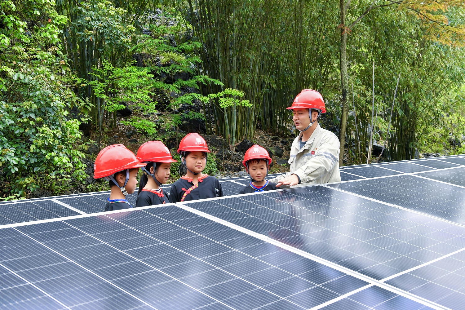 李云給學(xué)生們介紹光伏設(shè)備