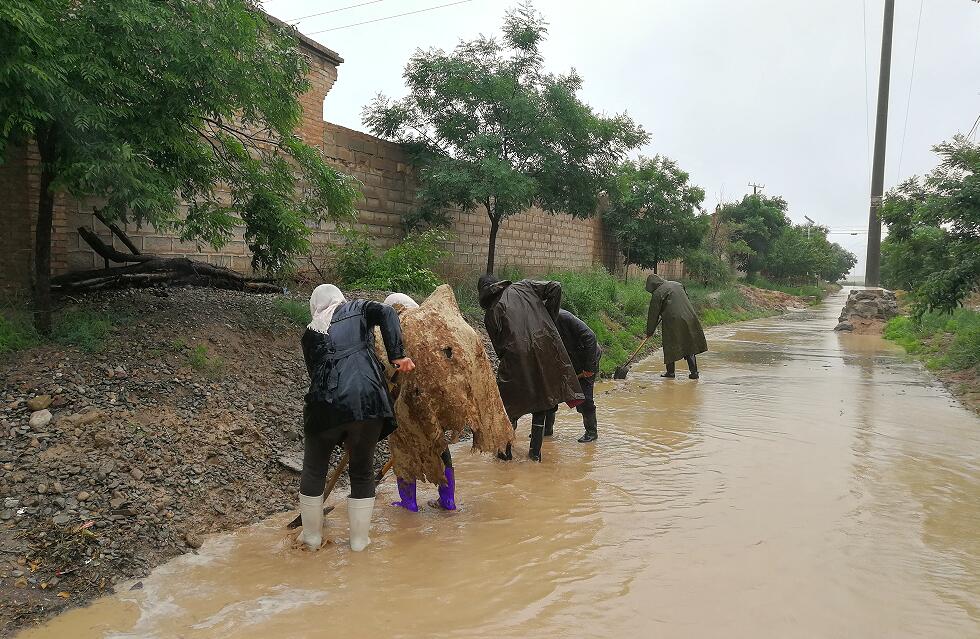 距離黃大媽家20多米處,水就已經(jīng)沒(méi)到膝蓋。其他好多村民拿著盆子從家里往屋外舀水,但幾乎起不到作用,路面上的積水還是不斷地往屋里倒灌。我蹚著水走到十字路口,雨水已經(jīng)沒(méi)到我的大腿。此時(shí)我突然發(fā)現(xiàn)這里比別處都低,雨水無(wú)法排出,積水從四面全涌過(guò)來(lái)。我趕緊把黃大媽和其他村民叫了過(guò)來(lái),鋤頭鐵鍬一起上。挖了半天,總算有一條排水溝??墒?,距離較遠(yuǎn),水溝還是有點(diǎn)高,只排走了部分積水。