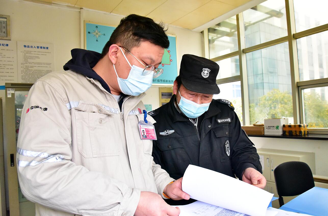 胡楓在門衛(wèi)處檢查人員出入登記情況