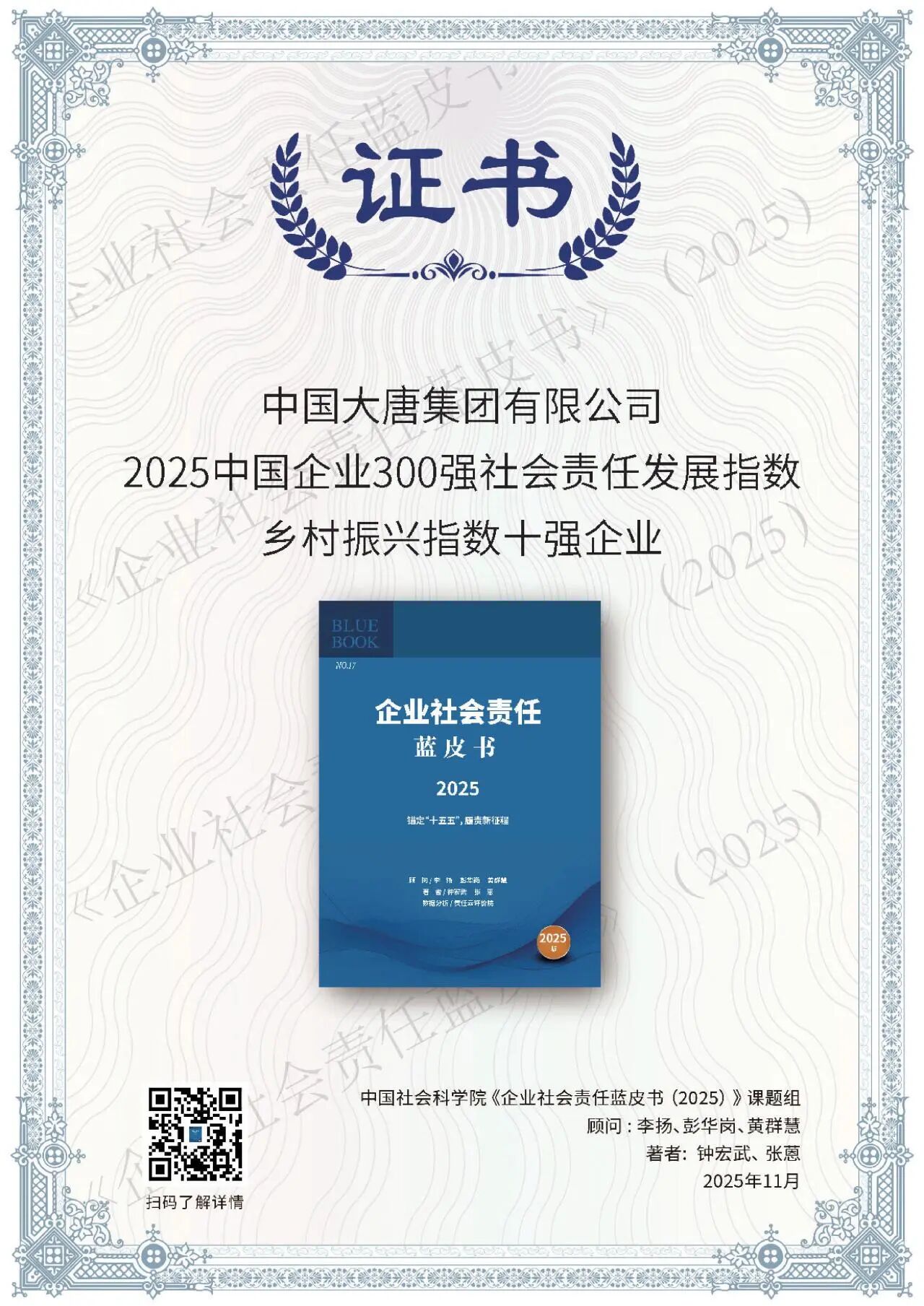 在本屆責(zé)任展上,中國大唐憑借在社會責(zé)任與ESG領(lǐng)域的全面深耕,獲得了多項(xiàng)認(rèn)可。